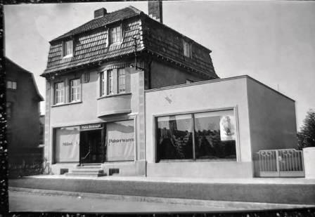 Sein Geschäft mir vier großen Schaufenster lag zentral am Adolf-Hitler-Platz 6 (heute Am Ehrenmal) – das größte Möbelhaus am Ort.